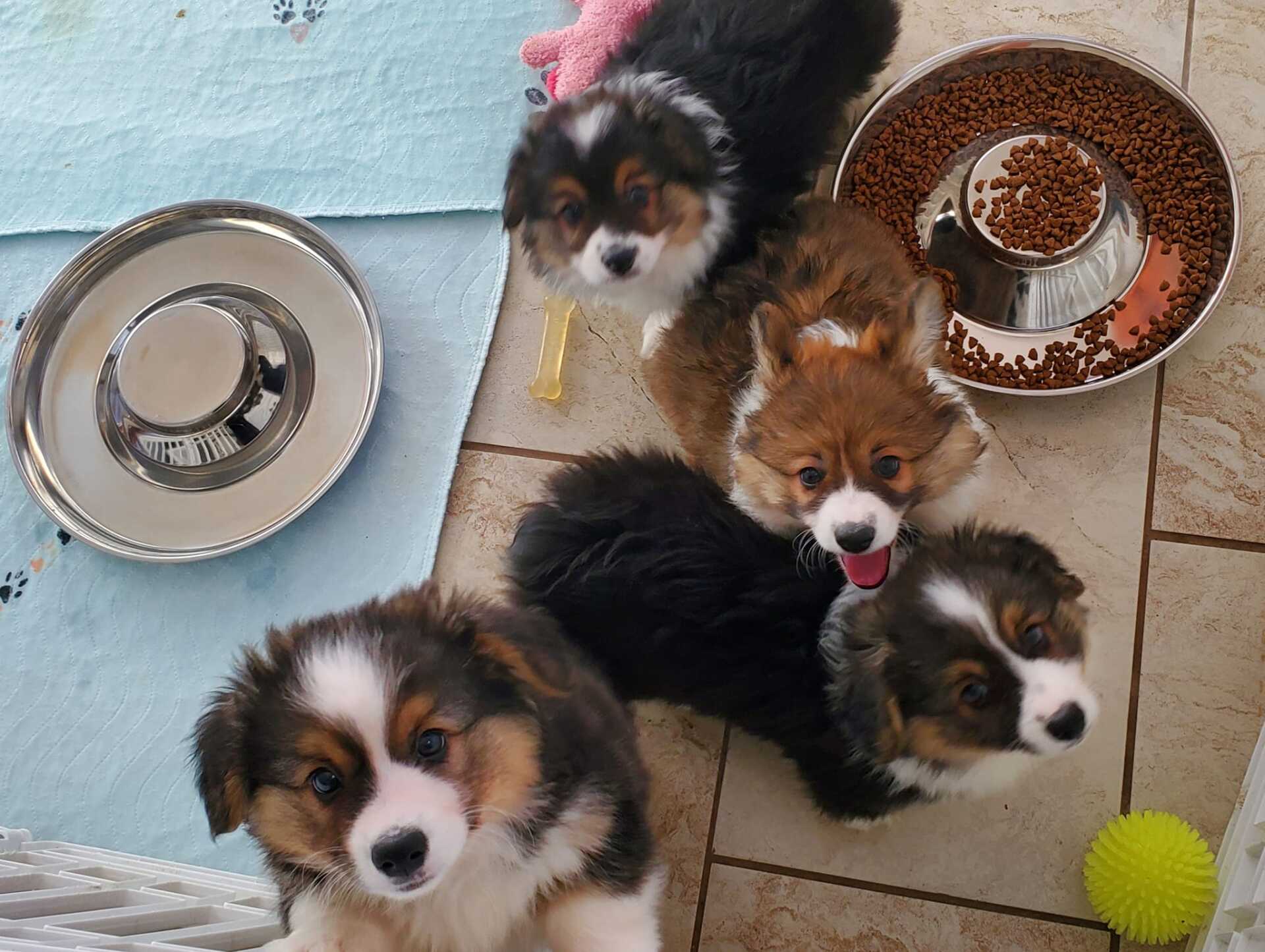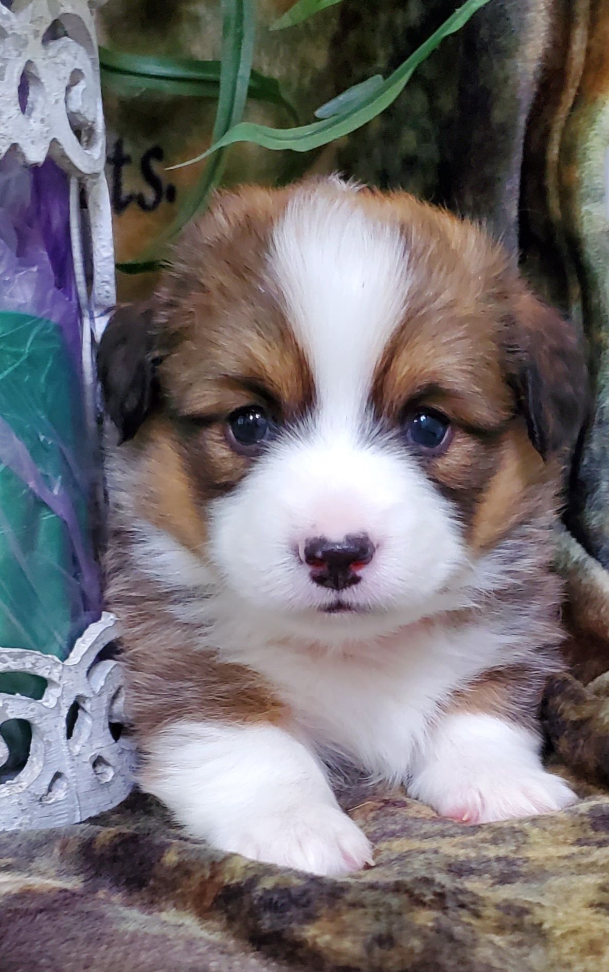 Our purebred Pembroke Welsh Corgi puppies are gorgeous! They can be Tricolor (red headed or black headed) Sable or Red and White and meet AKC standards. They are outgoing, curious, intuitive, and emotional. They are also delightfully stubborn and sometimes judging you but are guaranteed always entertaining. Pembroke Welsh Corgis are BORN ENTERTAINERS! They are very easy to train and live to please you. Our puppies' bond with their new families quickly because they are home-raised. They will have a greater special bond with your family that’s unlike buying a puppy from an average breeder or puppy store.